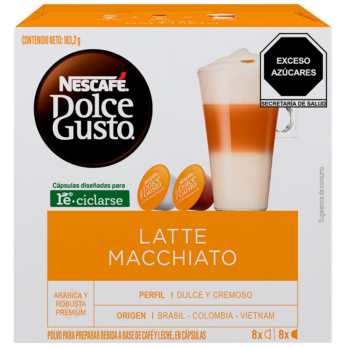 Latte Macchiato. Con más leche que el Cappuccino, este ícono italiano en capas es una combinación única de leche caliente, café suave y abundante espuma.
